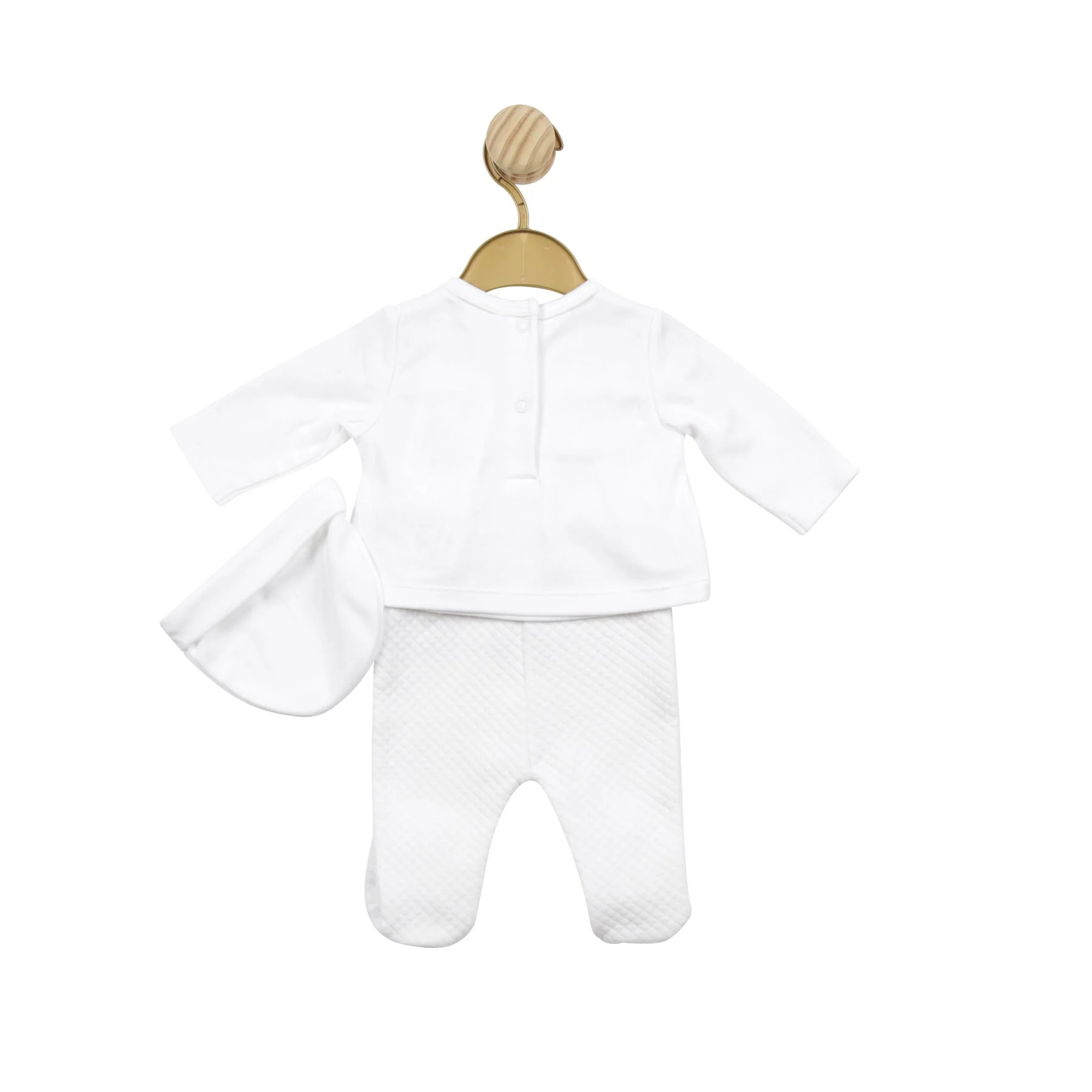 White Smock Waffle Tiny Baby Top, Pant and Hat