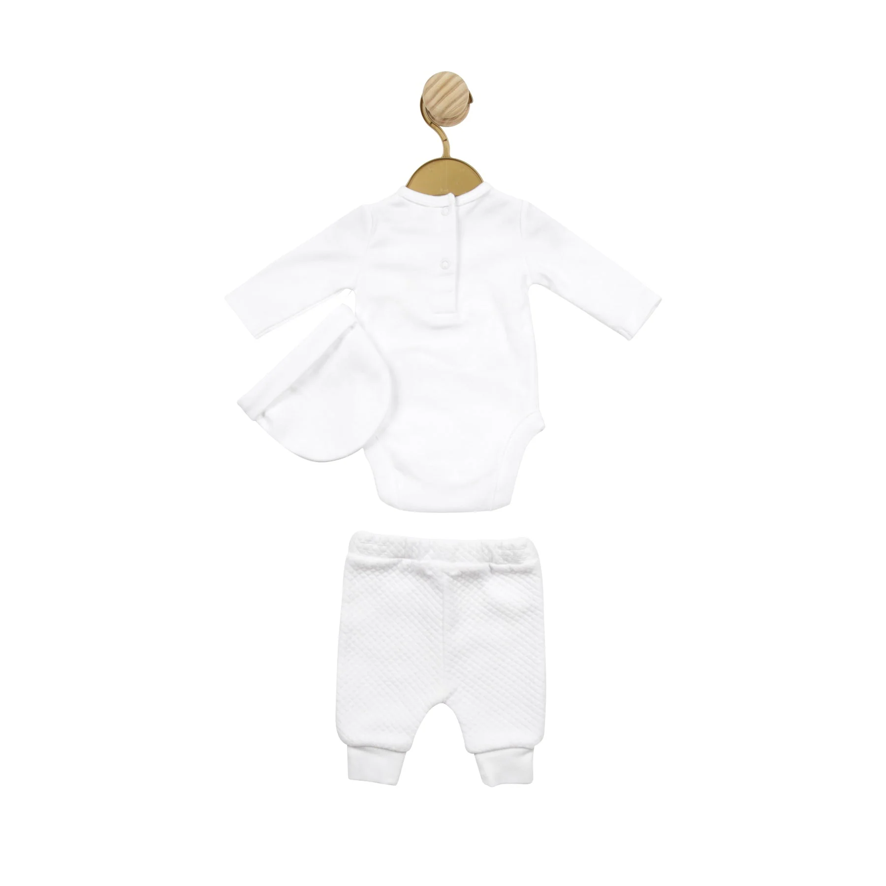 White Tiny Baby Bodysuit with Waffle Leggings and Hat