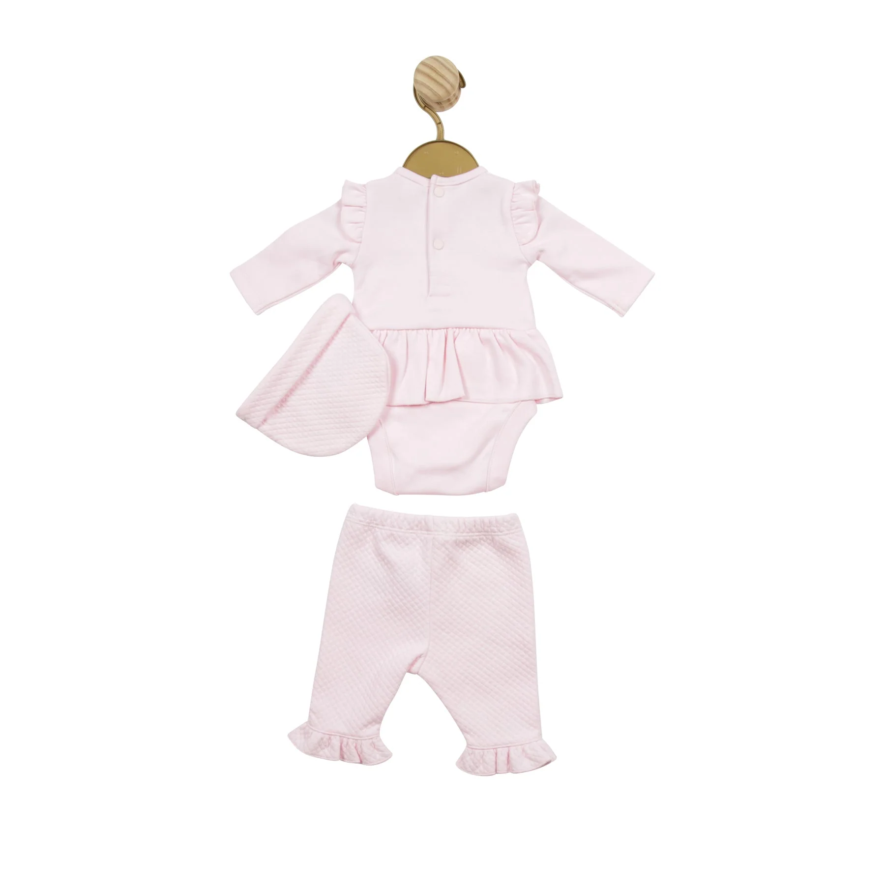 Pink Smocked Tiny Baby Bodysuit with Waffle Leggings and Hat