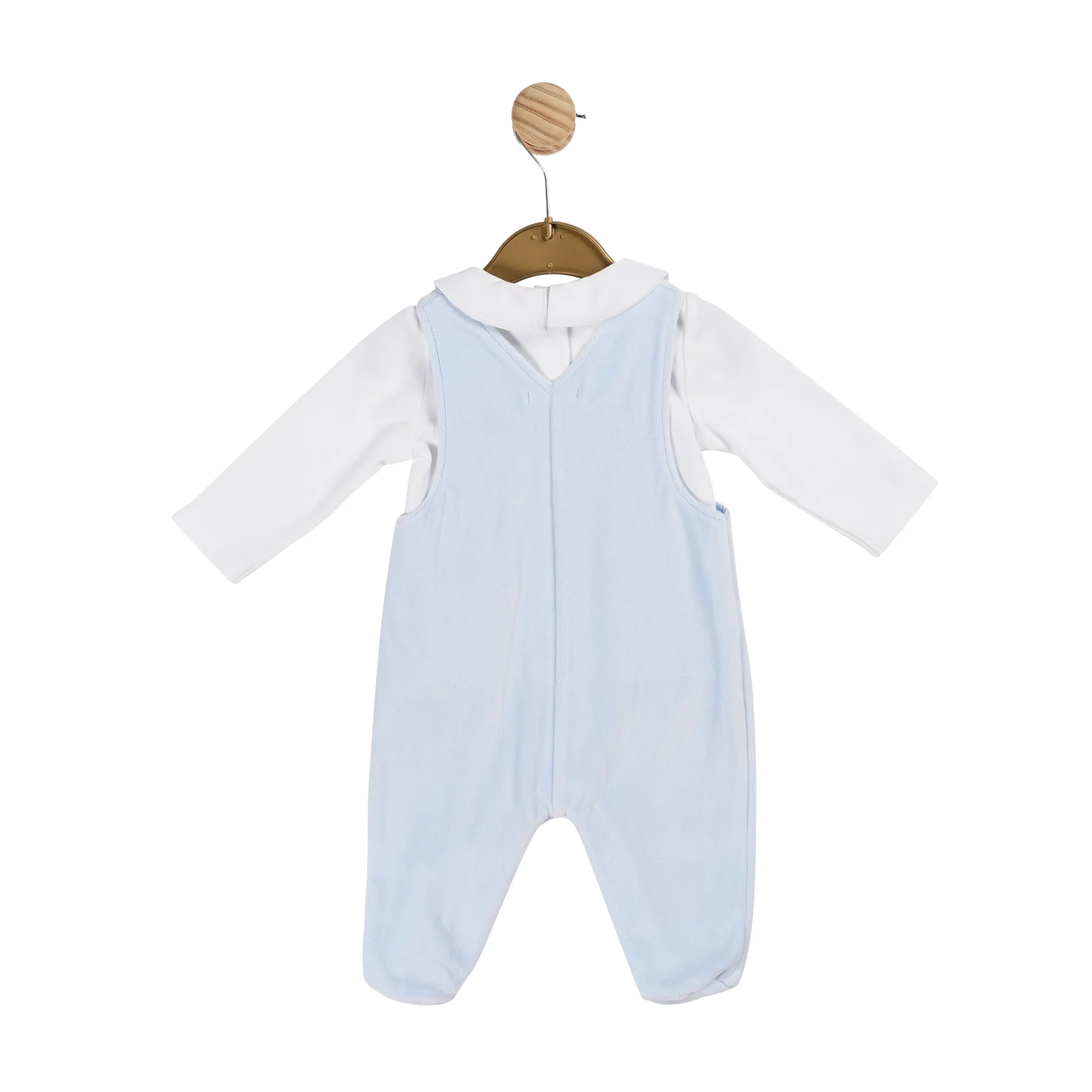 Introducing the AW24 Jersey Jacquard Collection’s top and dungaree babygrow set, a blend of charm and comfort for your little one. The white top features a delightful collar adorned with cute, playful pastel shapes and poppers at the back for easy dressing. Paired with baby blue dungarees that has enclosed feet. Crafted from the finest fabrics, this two piece set ensures both style and cosiness. Part of our AW24 range, it’s available in a variety of sizes, offering a sophisticated yet practical addition to your baby’s wardrobe for the season.