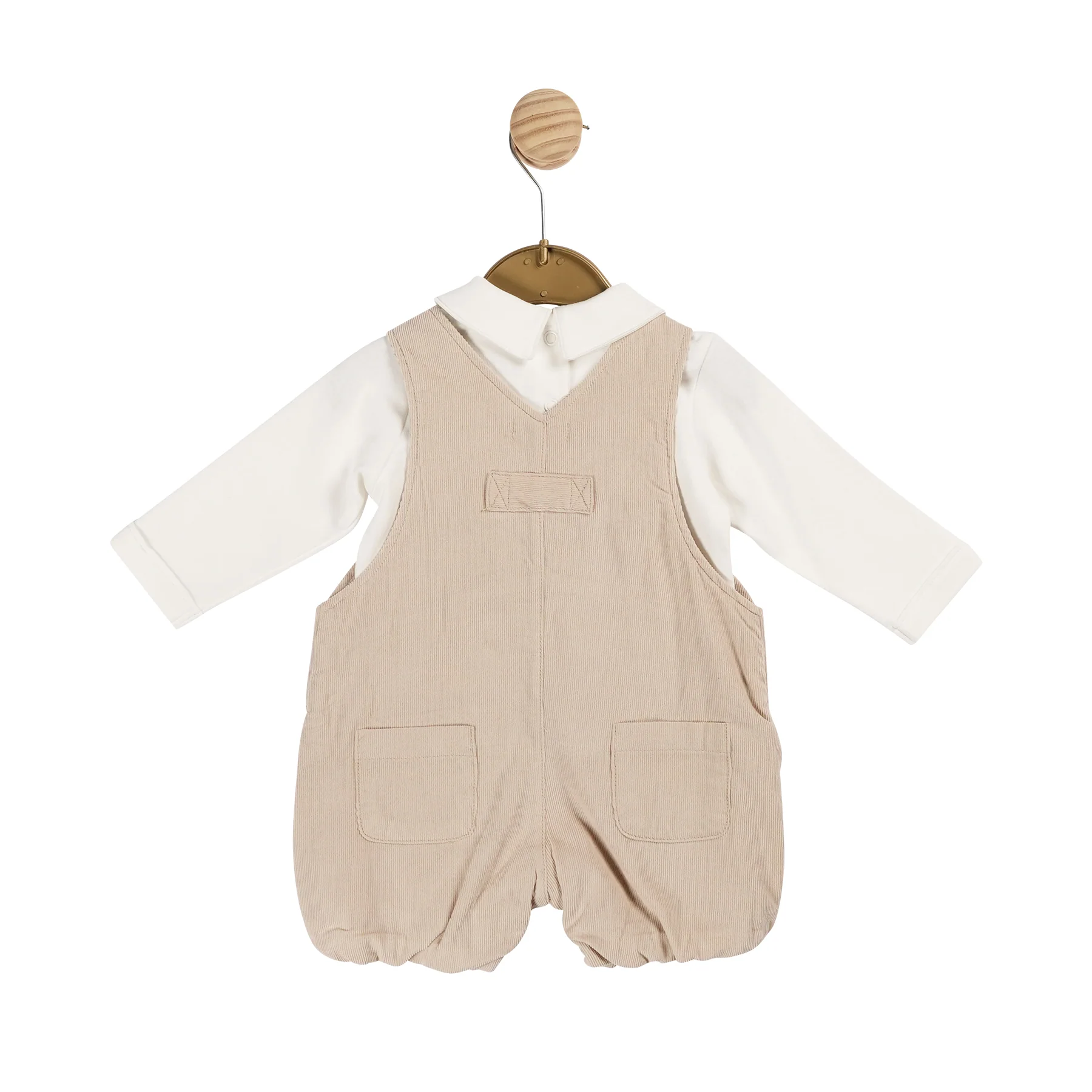 Introducing the AW24 Boys Needlecord Collection’s smart top and short dungaree set, a refined and stylish addition to your little one's wardrobe. This set features an ivory collared top, paired with beige dungarees adorned with metallic button detailing. Designed for easy dressing, the top includes poppers at the back, ensuring quick and convenient changes. Made from 100% cotton, this outfit combines exceptional comfort with sophisticated design. Available in sizes ranging from baby to toddler, it’s a perfect choice for keeping your child both cosy and fashionable for any outing this season.