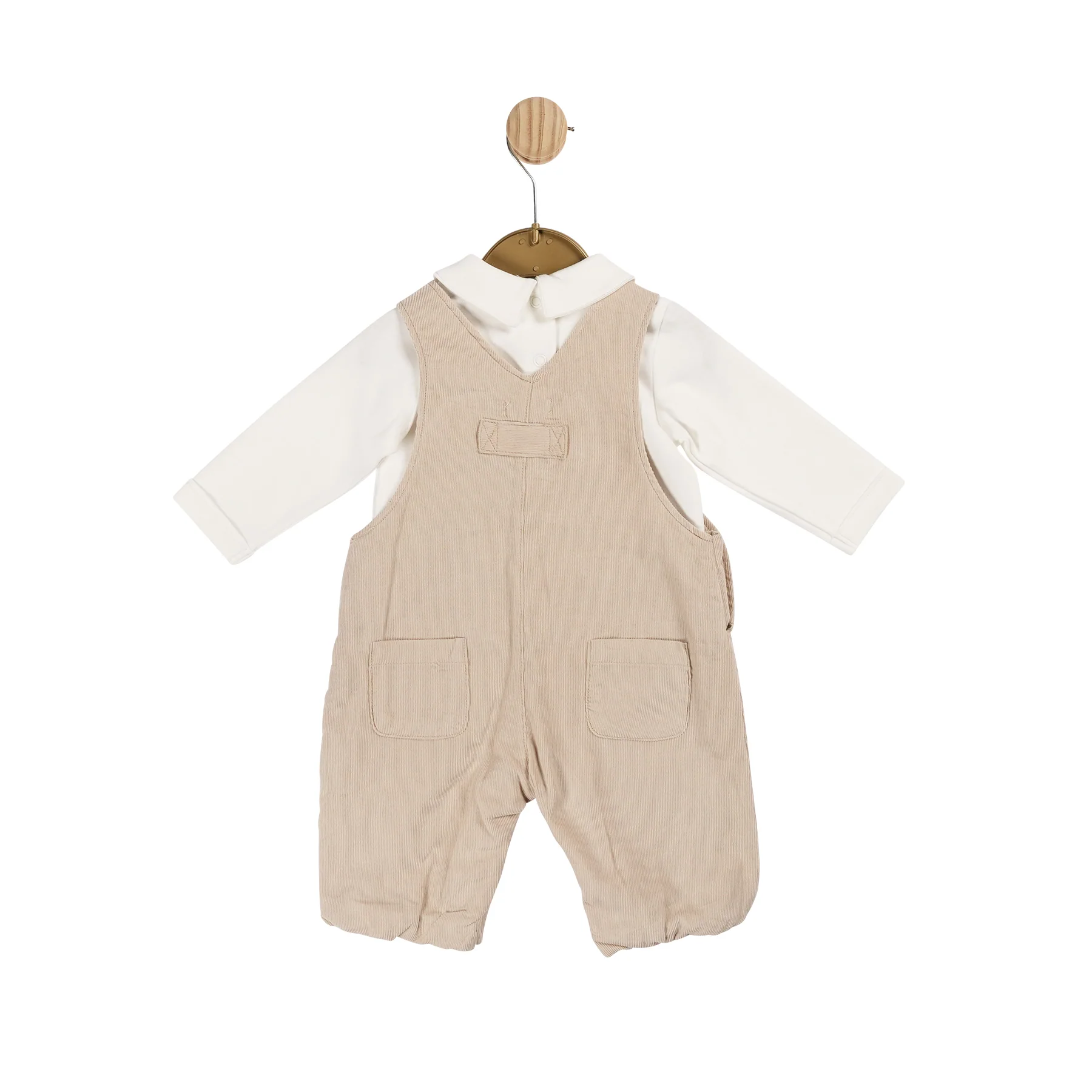 Introducing the AW24 Boys Needlecord Collection’s smart top and long dungaree set, a refined and stylish addition to your little one's wardrobe. This set features an ivory collared top, paired with beige dungarees adorned with metallic button detailing. Designed for easy dressing, the top includes poppers at the back, ensuring quick and convenient changes. Made from 100% cotton, this outfit combines exceptional comfort with sophisticated design. Available in sizes ranging from baby to toddler, it’s a perfect choice for keeping your child both cosy and fashionable for any outing this season.