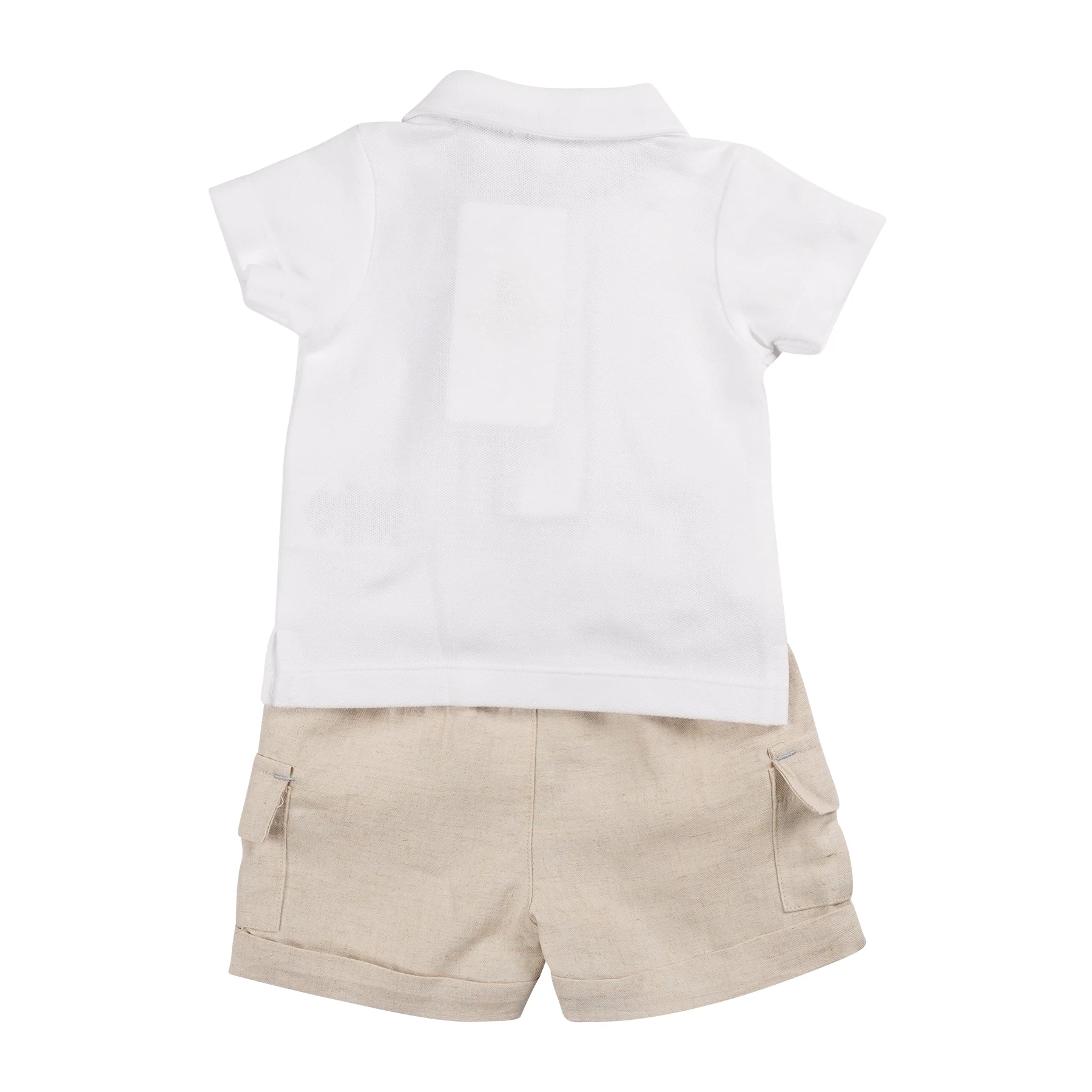 Beige Linen Cargo Polo Top & Short Set